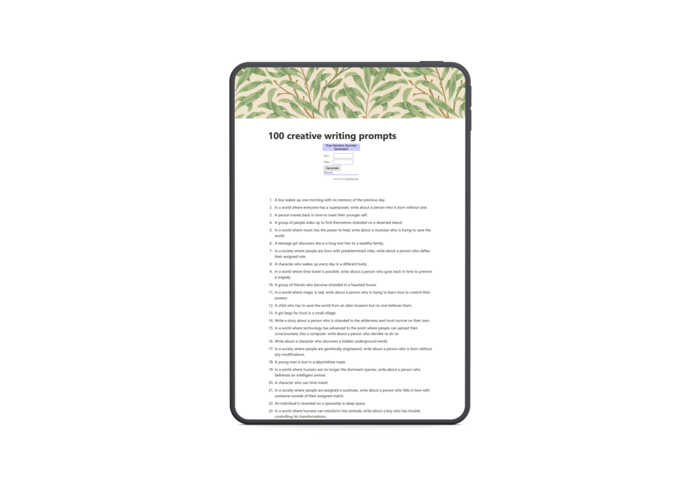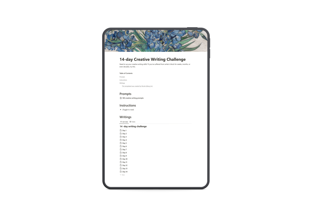 100 Creative Writing Prompts & 14-day Challenge$0+$0+https://schema.org/InStockusdArquebunArquebunName a fair price:$I want this!AccessLifetimeAdd to wishlist New wishlistShare on XShare on Facebook Copy linkCopy product URL