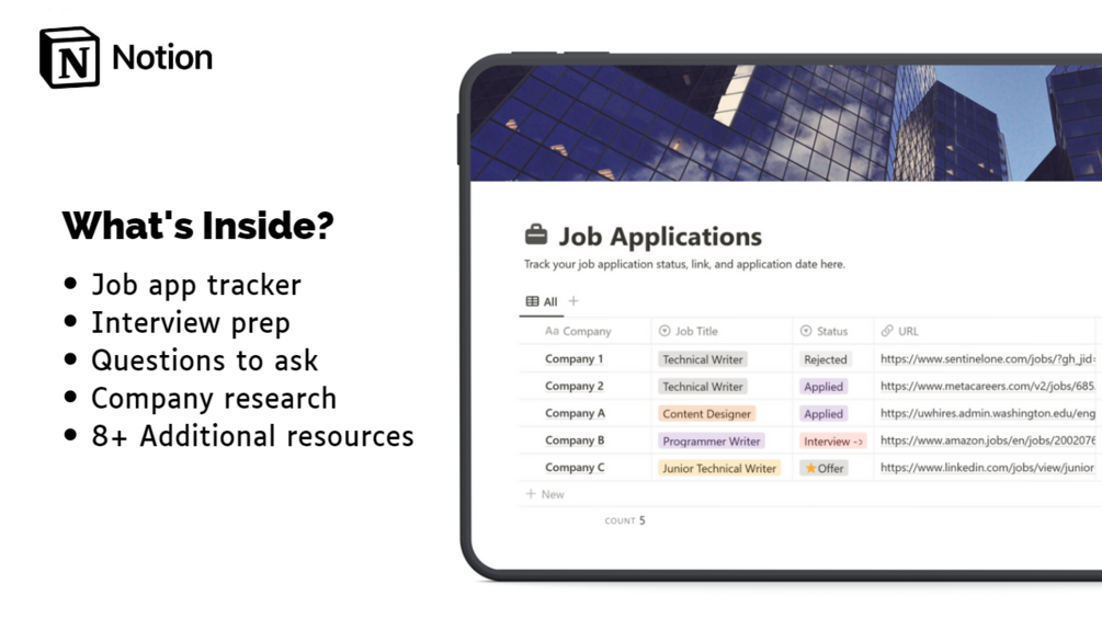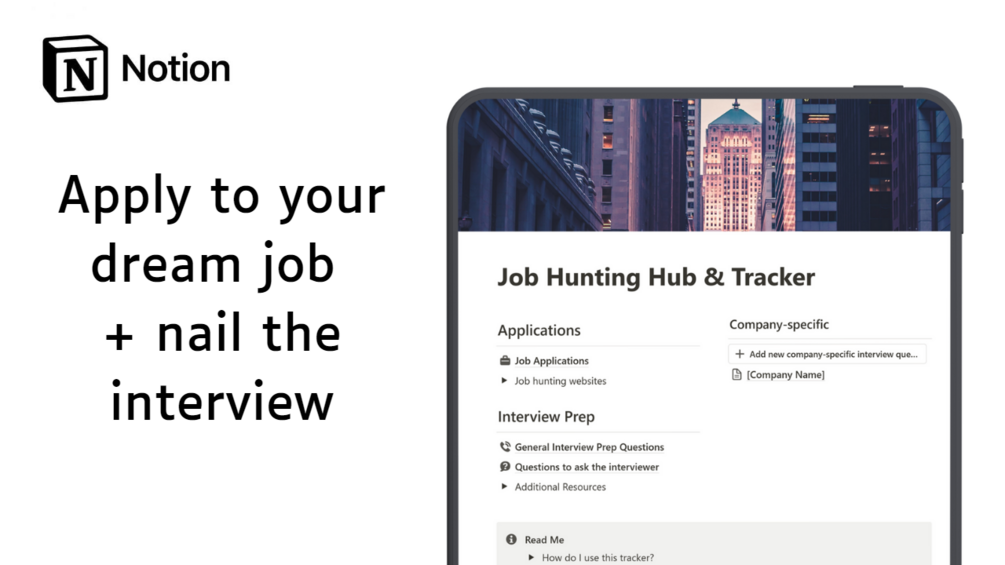 Introducing the Job Hunt & Interview Prep Tracker Notion template - your one-stop-shop for organizing your job search and interview preparation.